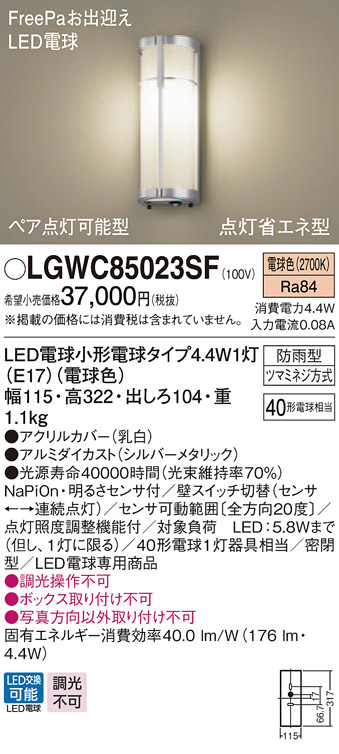 Panasonic ¥¨¥¯¥¹¥Æ¥ê¥¢¥é¥¤¥È LGWC85023SF