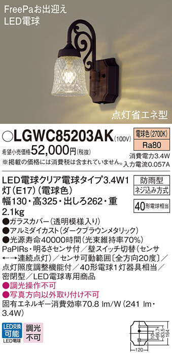 Panasonic ¥¨¥¯¥¹¥Æ¥ê¥¢¥é¥¤¥È LGWC85203AK