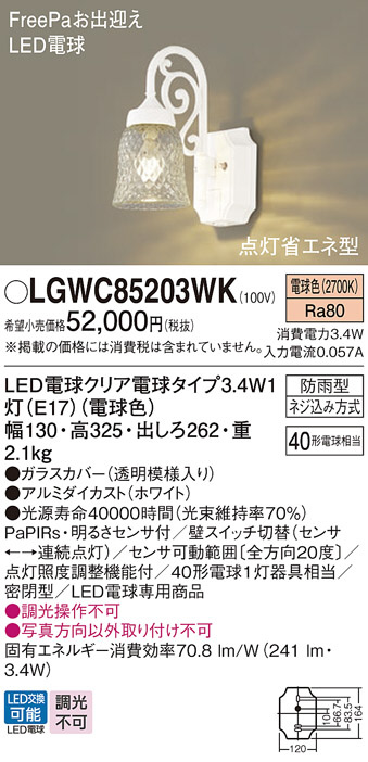 Panasonic ¥¨¥¯¥¹¥Æ¥ê¥¢¥é¥¤¥È LGWC85203WK