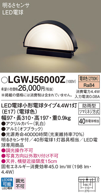 Panasonic ¥¨¥¯¥¹¥Æ¥ê¥¢¥é¥¤¥È LGWJ56000Z