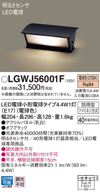 Panasonic ¥¨¥¯¥¹¥Æ¥ê¥¢¥é¥¤¥È LGWJ56001F