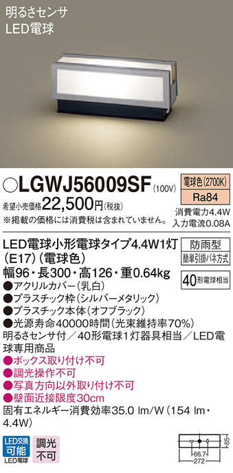 Panasonic ¥¨¥¯¥¹¥Æ¥ê¥¢¥é¥¤¥È LGWJ56009SF