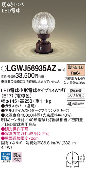 Panasonic ¥¨¥¯¥¹¥Æ¥ê¥¢¥é¥¤¥È LGWJ56935AZ