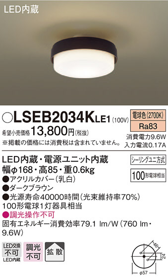 Panasonic ¥·¡¼¥ê¥ó¥°¥é¥¤¥È LSEB2034KLE1