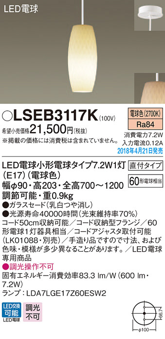 Panasonic ¥Ú¥ó¥À¥ó¥È¥é¥¤¥È LSEB3117K
