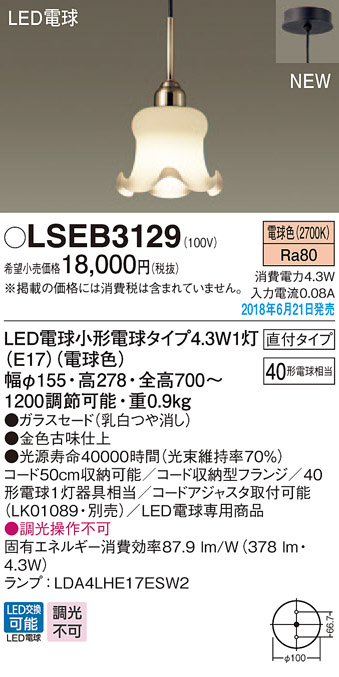 Panasonic ¥Ú¥ó¥À¥ó¥È¥é¥¤¥È LSEB3129