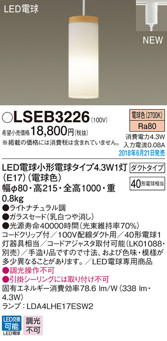 Panasonic ¥Ú¥ó¥À¥ó¥È¥é¥¤¥È LSEB3226