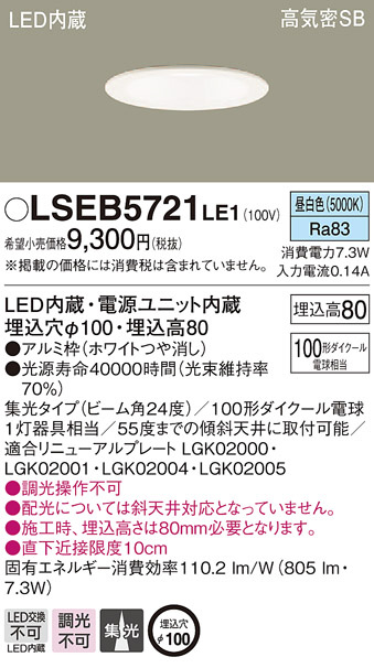 Panasonic ¥À¥¦¥ó¥é¥¤¥È LSEB5721LE1