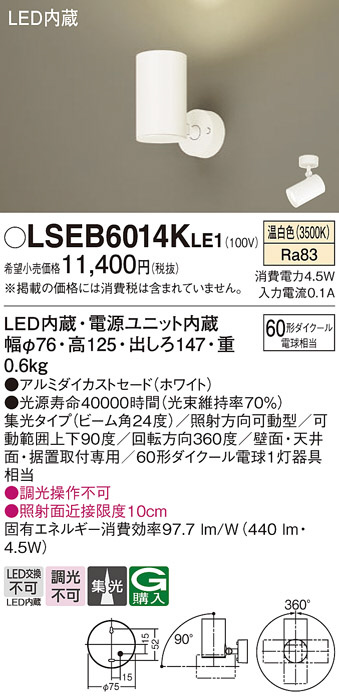 Panasonic ¥¹¥Ý¥Ã¥È¥é¥¤¥È LSEB6014KLE1