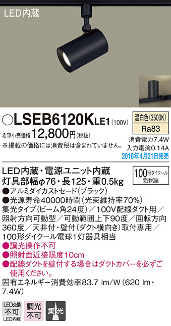 Panasonic ¥¹¥Ý¥Ã¥È¥é¥¤¥È LSEB6120KLE1