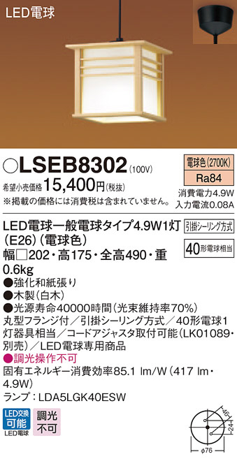 Panasonic ¥Ú¥ó¥À¥ó¥È LSEB8302