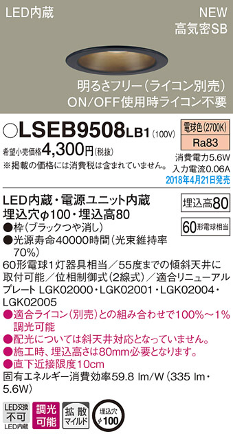Panasonic ¥À¥¦¥ó¥é¥¤¥È LSEB9508LB1