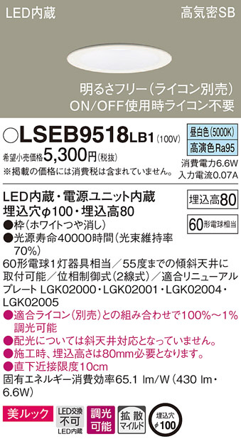 Panasonic ¥À¥¦¥ó¥é¥¤¥È LSEB9518LB1