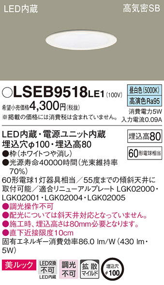 Panasonic ¥À¥¦¥ó¥é¥¤¥È LSEB9518LE1