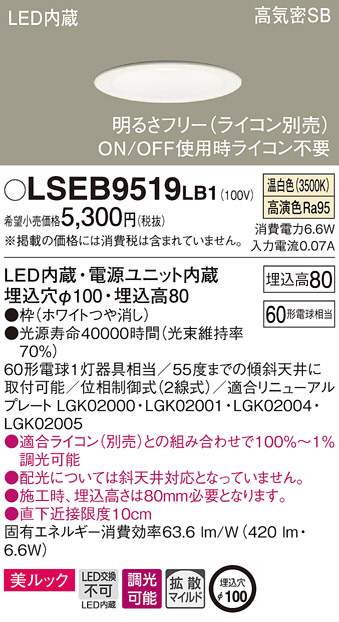 Panasonic ¥À¥¦¥ó¥é¥¤¥È LSEB9519LB1