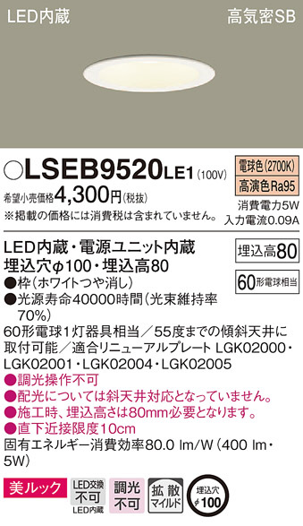 Panasonic ¥À¥¦¥ó¥é¥¤¥È LSEB9520LE1