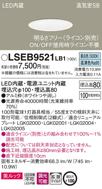 Panasonic ¥À¥¦¥ó¥é¥¤¥È LSEB9521LB1