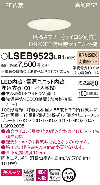 Panasonic ¥À¥¦¥ó¥é¥¤¥È LSEB9523LB1