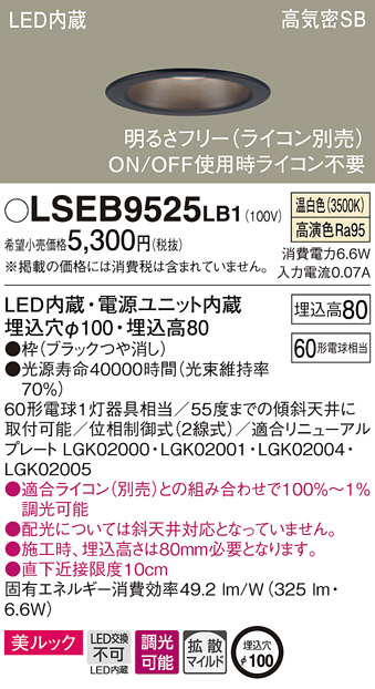 Panasonic ¥À¥¦¥ó¥é¥¤¥È LSEB9525LB1