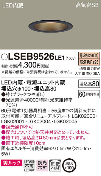 Panasonic ¥À¥¦¥ó¥é¥¤¥È LSEB9526LE1