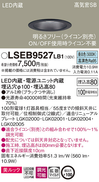 Panasonic ¥À¥¦¥ó¥é¥¤¥È LSEB9527LB1