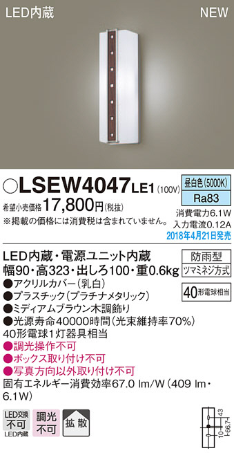 Panasonic ¥¨¥¯¥¹¥Æ¥ê¥¢¡¦¥¢¥¦¥È¥É¥¢ LSEW4047LE1