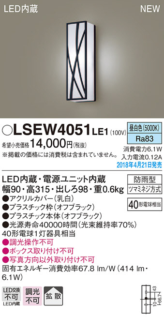 Panasonic ¥¨¥¯¥¹¥Æ¥ê¥¢¡¦¥¢¥¦¥È¥É¥¢ LSEW4051LE1