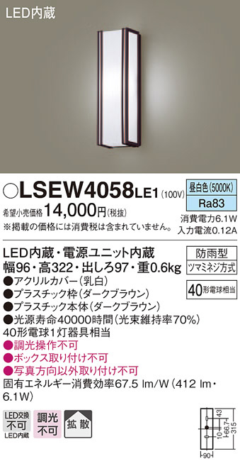Panasonic ¥¨¥¯¥¹¥Æ¥ê¥¢¥é¥¤¥È LSEW4058LE1