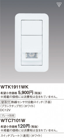 Panasonic Ç®Àþ¥»¥ó¥µÉÕ¼«Æ°¥¹¥¤¥Ã¥Á¡ÊÊÉÍѻҴï¡Ë WTK1911WK