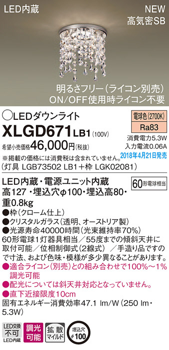 Panasonic ¥À¥¦¥ó¥é¥¤¥È XLGD671LB1