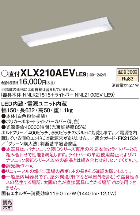Panasonic ¥Ù¡¼¥¹¥é¥¤¥È XLX210AEVLE9