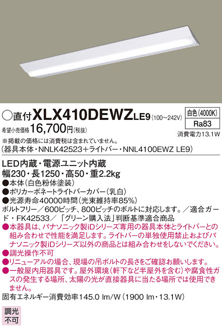 Panasonic ¥Ù¡¼¥¹¥é¥¤¥È XLX410DEWZLE9