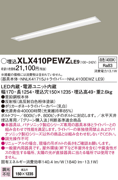 Panasonic ¥Ù¡¼¥¹¥é¥¤¥È XLX410PEWZLE9