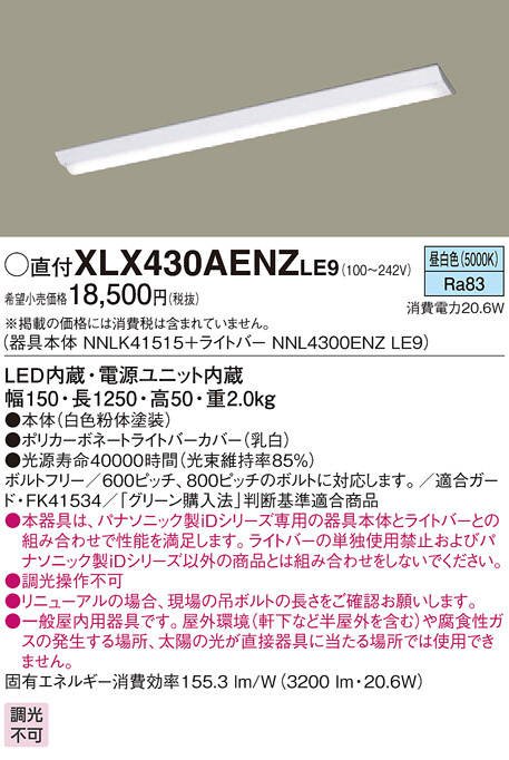 Panasonic ¥Ù¡¼¥¹¥é¥¤¥È XLX430AENZLE9