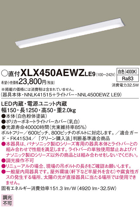 Panasonic ¥Ù¡¼¥¹¥é¥¤¥È XLX450AEWZLE9