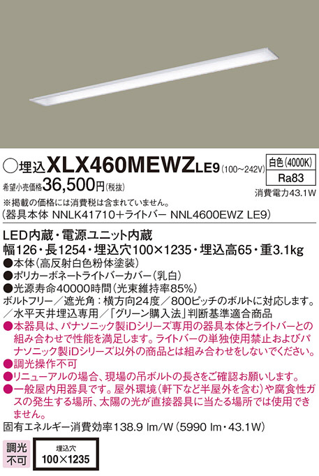 Panasonic ¥Ù¡¼¥¹¥é¥¤¥È XLX460MEWZLE9
