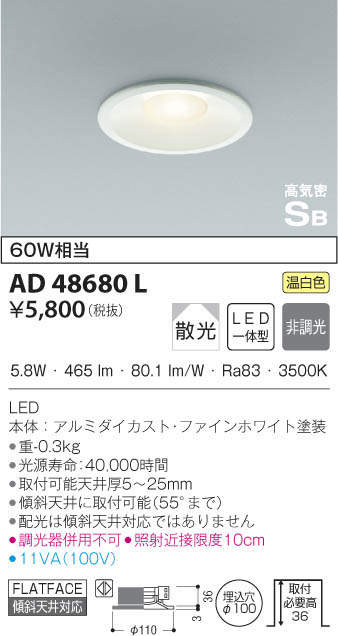 KOIZUMI ¥³¥¤¥º¥ß¾ÈÌÀ ¹âµ¤Ì©¥À¥¦¥ó¥é¥¤¥È AD48680L