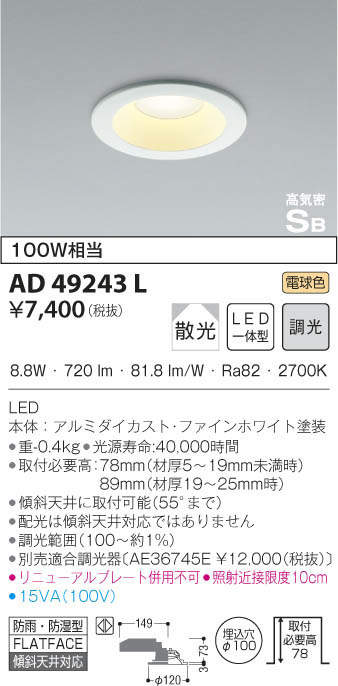 KOIZUMI ¥³¥¤¥º¥ß¾ÈÌÀ ¹âµ¤Ì©¥À¥¦¥ó¥é¥¤¥È AD49243L