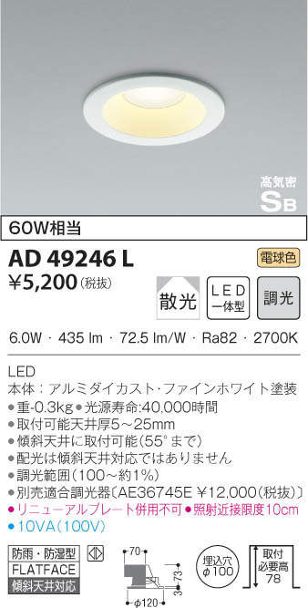 KOIZUMI ¥³¥¤¥º¥ß¾ÈÌÀ ¹âµ¤Ì©¥À¥¦¥ó¥é¥¤¥È AD49246L