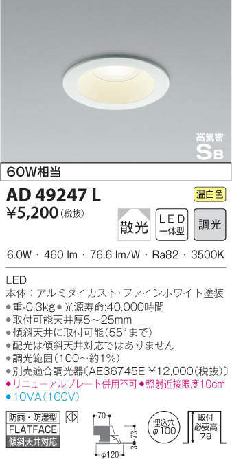 KOIZUMI ¥³¥¤¥º¥ß¾ÈÌÀ ¹âµ¤Ì©¥À¥¦¥ó¥é¥¤¥È AD49247L