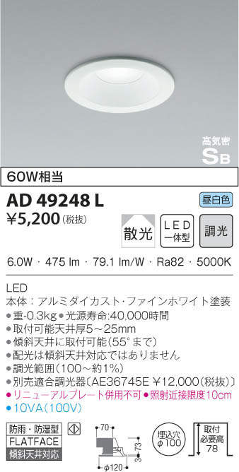 KOIZUMI ¥³¥¤¥º¥ß¾ÈÌÀ ¹âµ¤Ì©¥À¥¦¥ó¥é¥¤¥È AD49248L