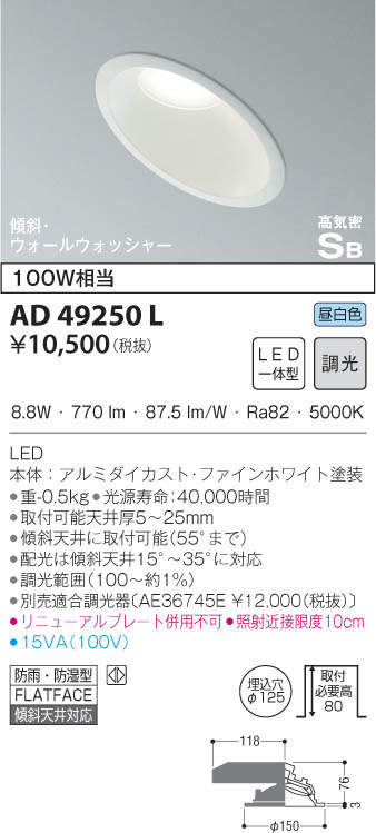 KOIZUMI ¥³¥¤¥º¥ß¾ÈÌÀ ¹âµ¤Ì©¥À¥¦¥ó¥é¥¤¥È AD49250L