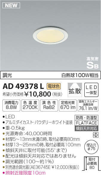 ¥³¥¤¥º¥ß¾ÈÌÀ KOIZUMI ¹âµ¤Ì©¥À¥¦¥ó¥é¥¤¥È AD49378L