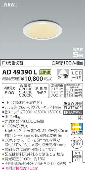 ¥³¥¤¥º¥ß¾ÈÌÀ KOIZUMI ¹âµ¤Ì©¥À¥¦¥ó¥é¥¤¥È AD49390L