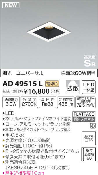 ¥³¥¤¥º¥ß¾ÈÌÀ KOIZUMI ¹âµ¤Ì©¥À¥¦¥ó¥é¥¤¥È AD49515L