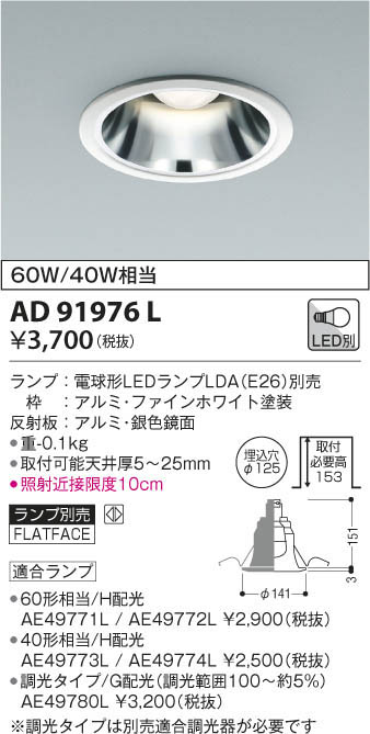 KOIZUMI ¥³¥¤¥º¥ß¾ÈÌÀ £Í·Á¥À¥¦¥ó¥é¥¤¥È AD91976L