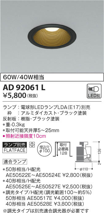 KOIZUMI ¥³¥¤¥º¥ß¾ÈÌÀ £Í·Á¥À¥¦¥ó¥é¥¤¥È AD92061L