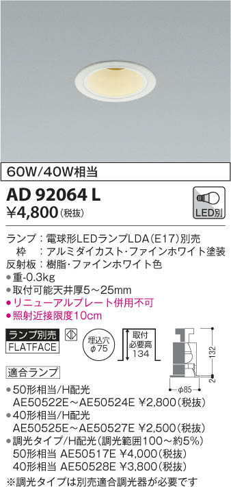 KOIZUMI ¥³¥¤¥º¥ß¾ÈÌÀ £Í·Á¥À¥¦¥ó¥é¥¤¥È AD92064L