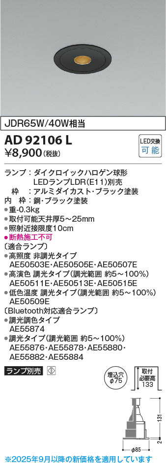 Koizumi ¥³¥¤¥º¥ß¾ÈÌÀ LED¥À¥¦¥ó¥é¥¤¥È AD92106L