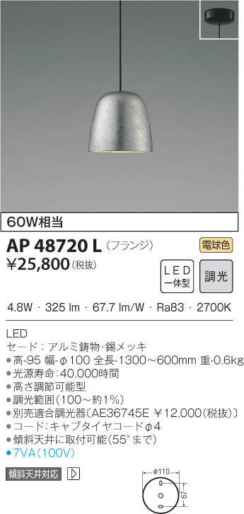 KOIZUMI ¥³¥¤¥º¥ß¾ÈÌÀ ¥Ú¥ó¥À¥ó¥È AP48720L